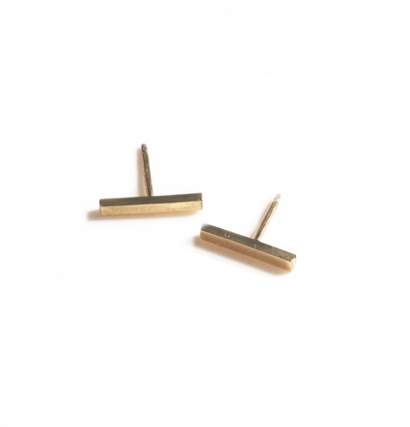 These bars are a great everyday stud. They measure approximately 1/2". They come in solid 14k, 14k gold filled or sterling silver.