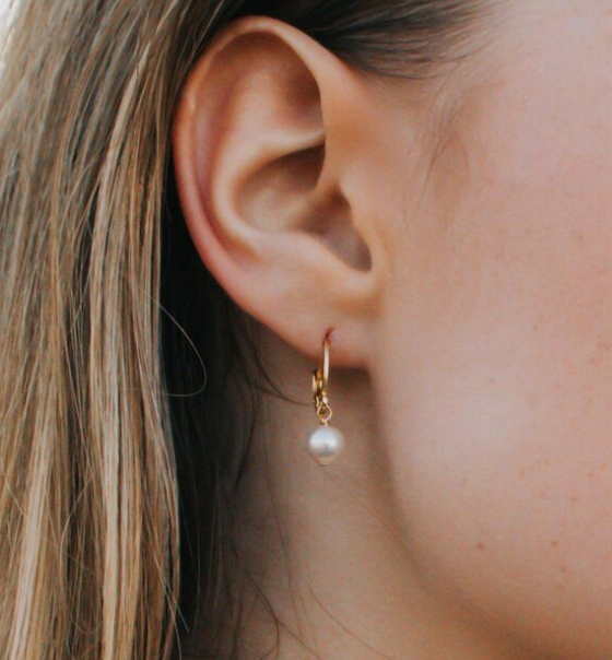 Elevate your look with the timeless elegance of these hoops accented with with a natural freshwater pearl. Crafted from high-quality 14k gold filled or sterling silver, these hoops will add a touch of luxury and finesse to your ensemble. Perfect for special occasions or everyday wear.