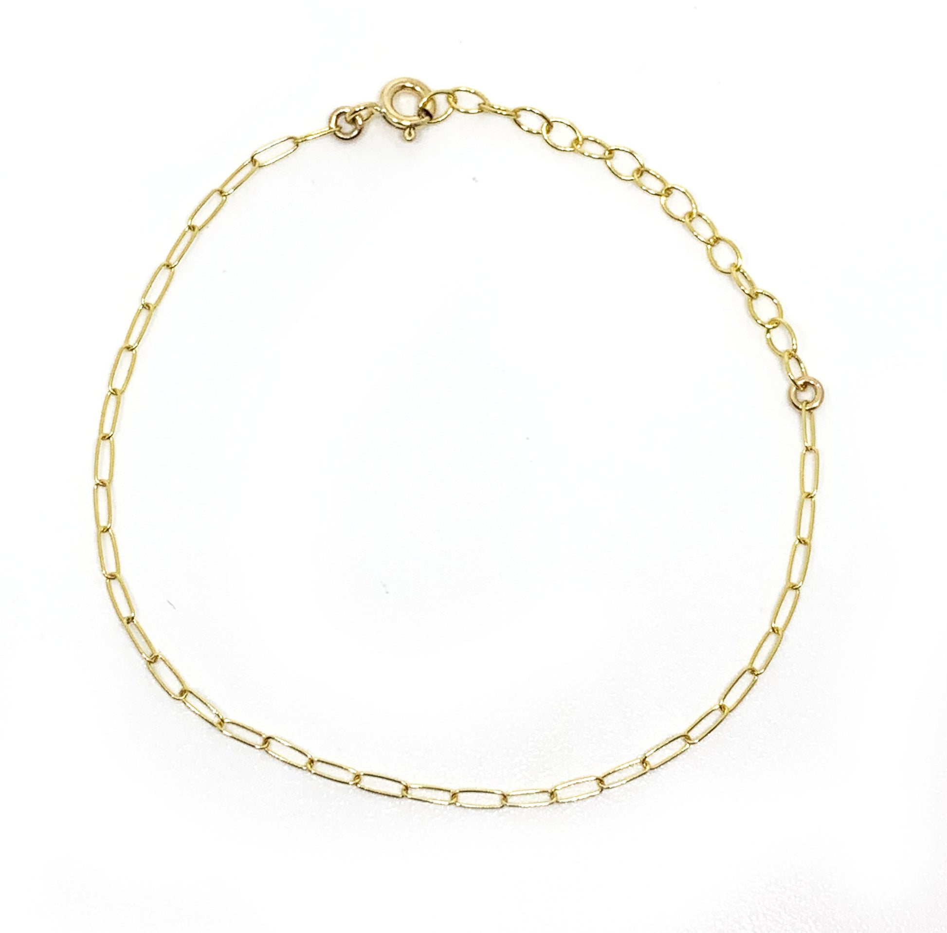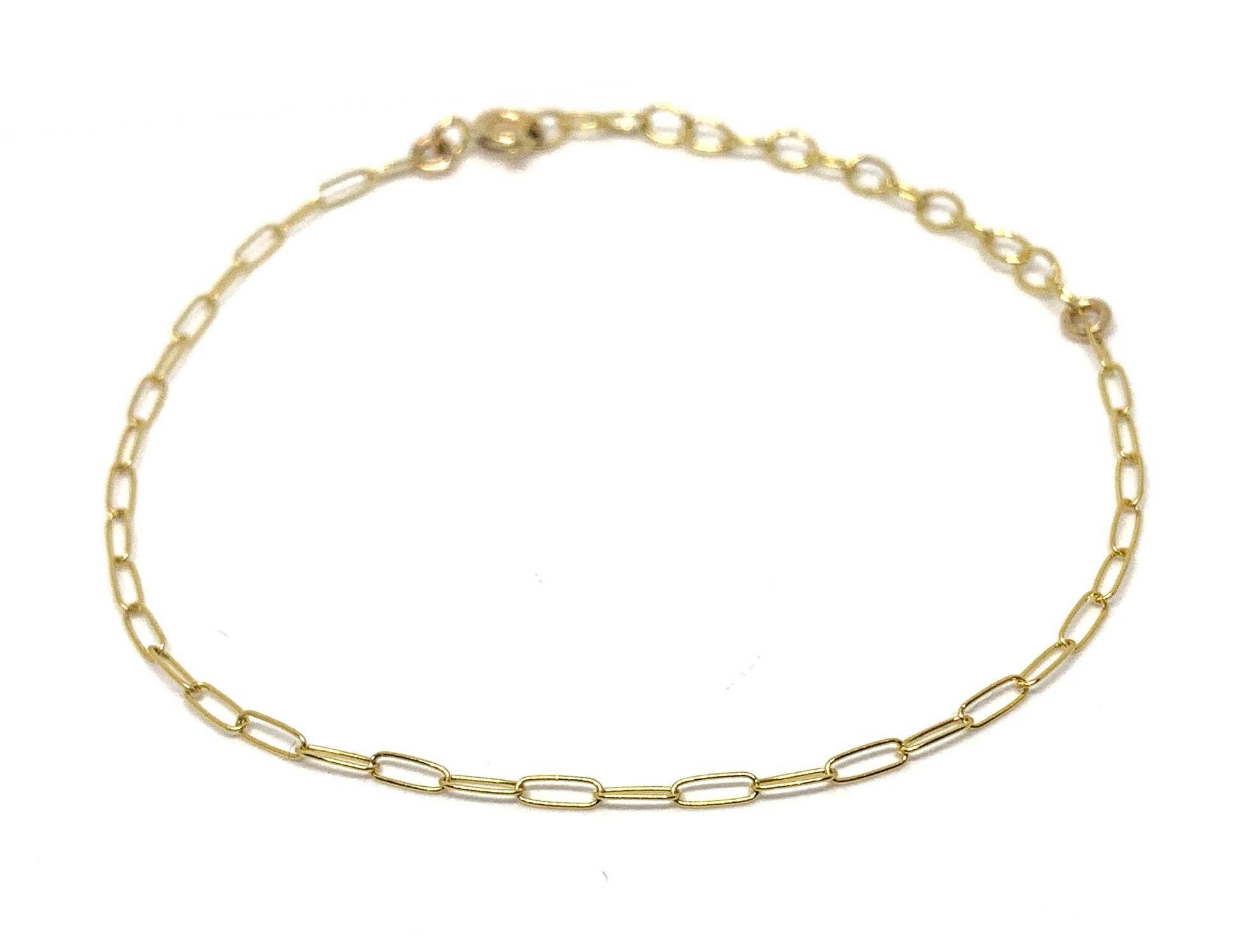 This thin adjustable paperclip bracelet is made out of 14k gold filled and is adjustable 6 1/2-7 1/2".